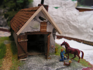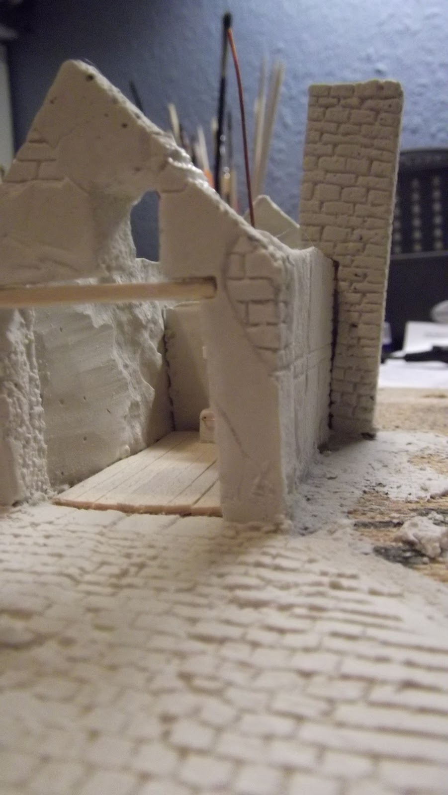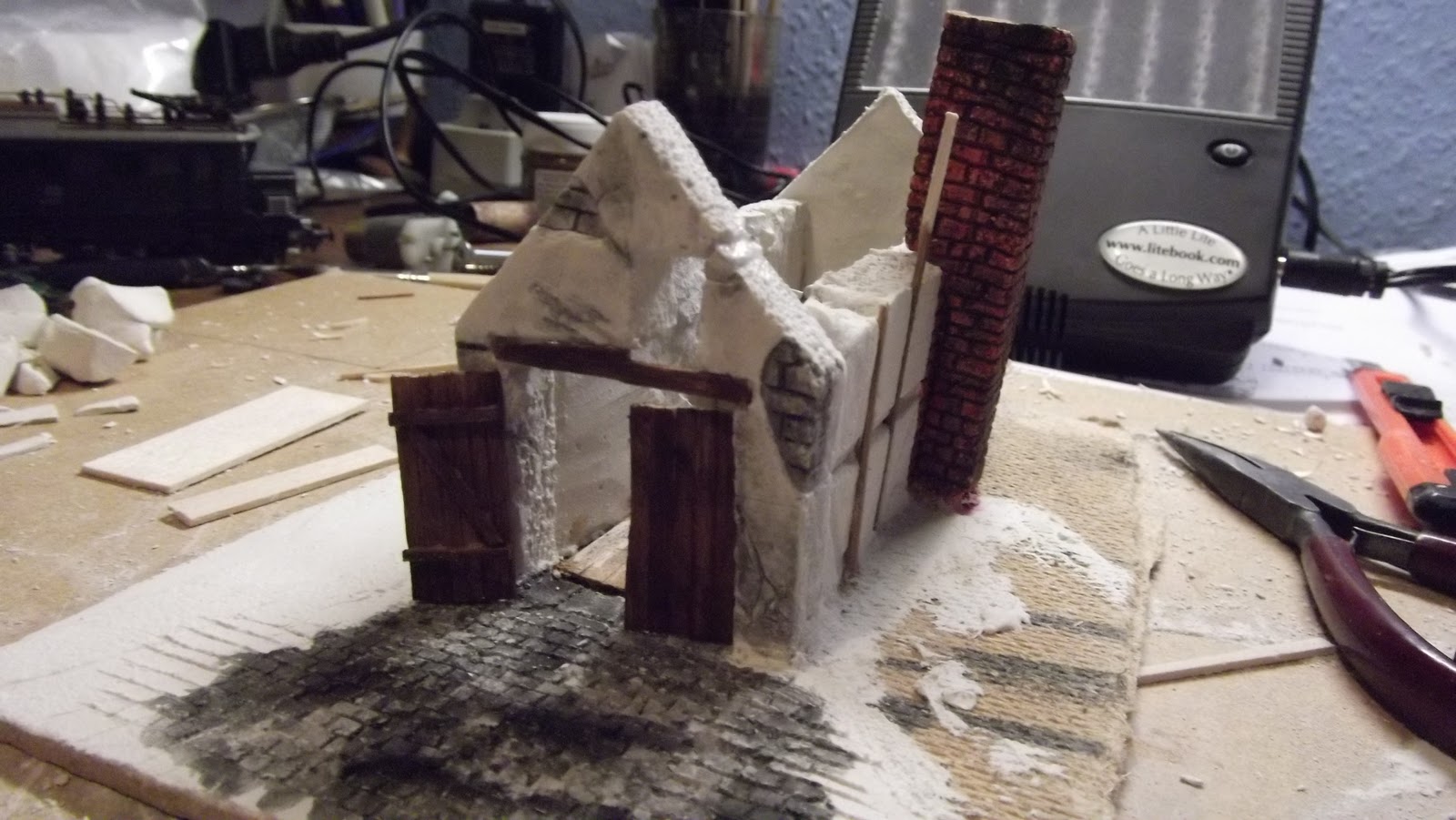 | huset er samlet og jeg er begyndt at ridse detaljer, skorsten er støbt for sig og lavet færdig |